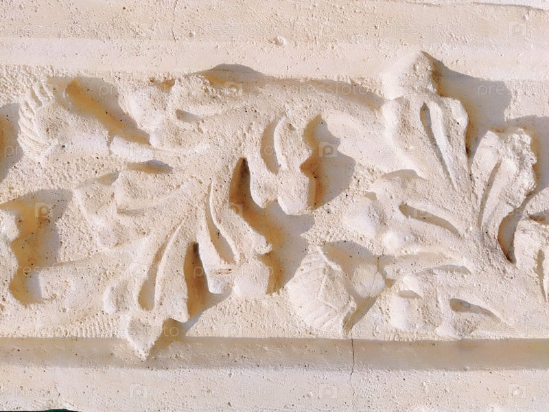 Орнамент, скульптурный рисунок из структурированных растительных элементов. Отделка стены лепниной в Дубровнике, Хорватия. Полоса трилистников. Акант — травяная растительность, листья — элементы лепнины