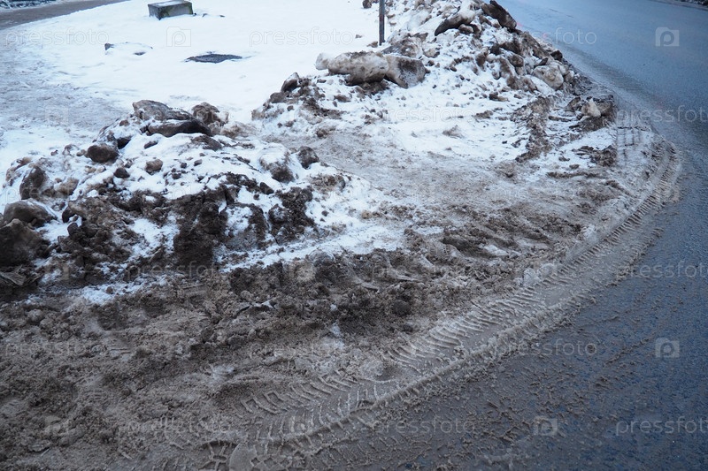 Снег, лед, слякоть и зимняя грязь на пешеходном переходе. Температура воздуха около 0. Сложные условия движения. Тормозной путь автомобиля. Правила дорожного движения. Инфраструктура и дорожные службы
