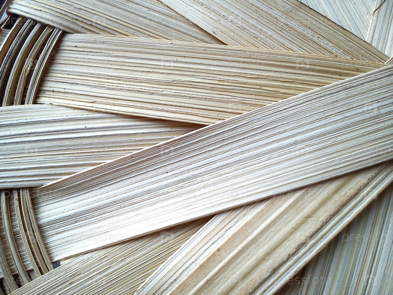 Часть корзины, сплетенной из лозы в теплых бежевых тонах. Корзина из щепы или лыка