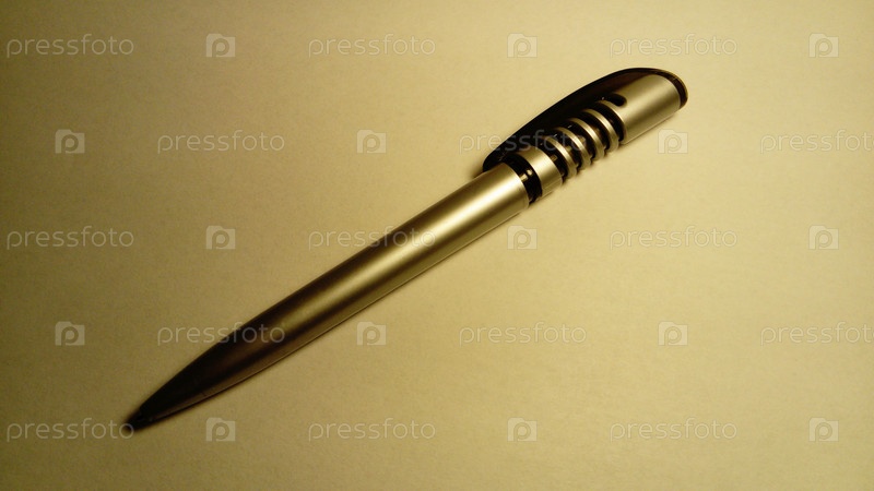 Металлическая шариковая ручка при мягком освещении на белом фоне