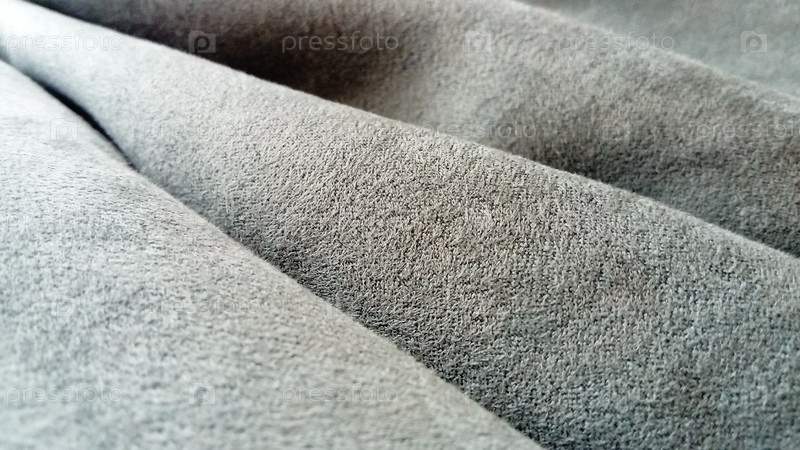 Крупный план бархатистой плотной ткани для штор серого цвета. Естественный дневной свет