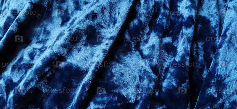Бархатная велюровая ткань на фоне светящихся светлых и темных теней. Фон для театральных и модных дизайнерских тем. Приятная синяя ткань с переливом. Мягкий фокус