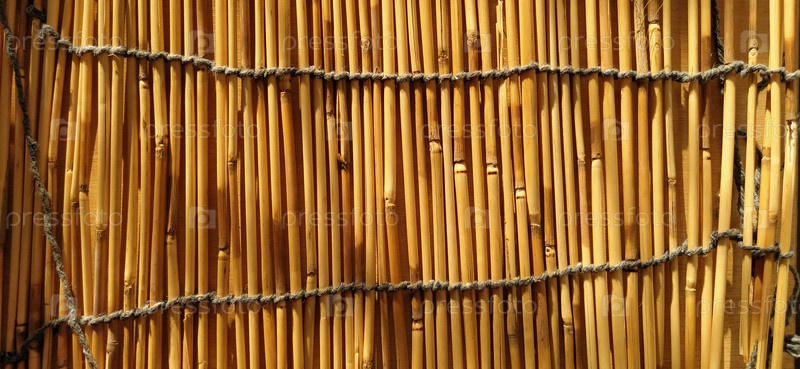 На стол постелили соломенную подстилку, скатерть или небольшой коврик. Вид сверху прямо. Мягкий вечерний солнечный свет отражается от стеблей. Некоторые палочки сломаны, нитки и веревки сплетены