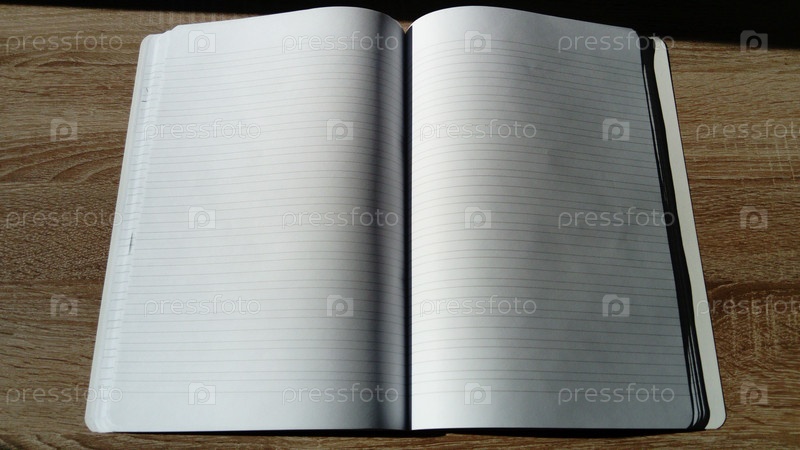Блокнот разворота с пустыми белыми страницами. Жесткий естественный солнечный свет