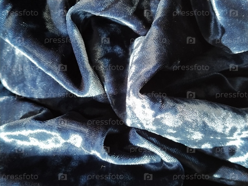Бархатная велюровая ткань на фоне светящихся светлых и темных теней. Фон для театральных и модных дизайнерских тем. Приятная синяя ткань с переливом