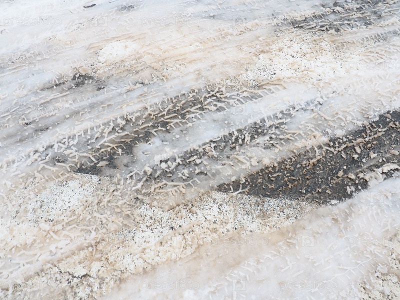 Снег, лед, слякоть и зимняя грязь на пешеходном переходе. Температура воздуха около 0. Сложные условия движения. Тормозной путь автомобиля. Правила дорожного движения. Инфраструктура и дорожные службы
