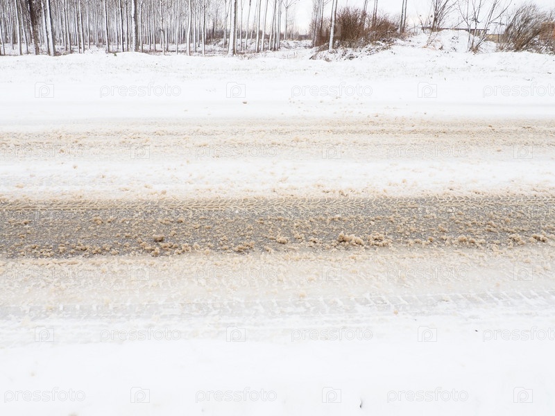 Сугробы на обочине дороги. Плохая погода и пробки. Снег на асфальте. Сложные условия вождения. Зимняя слякоть на дороге. Тормозной путь автомобиля