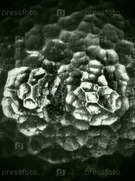 Рифленое стекло, задний источник света. Игра бликов и отражений на прозрачной неровной поверхности. Темные и светлые абстрактные асимметричные многоосвещенные плоскости. Абстрактный ухабистый зеленый фон