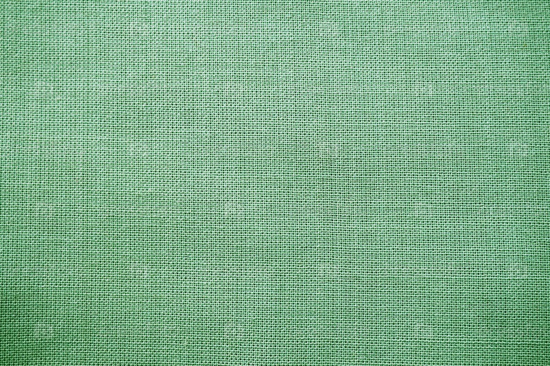 Текстура натуральной зеленой ткани крупным планом. Текстура ткани выполнена из натурального хлопкового или льняного текстильного материала. Зеленый холст фон. Гладкая поверхность, гладкая ткань