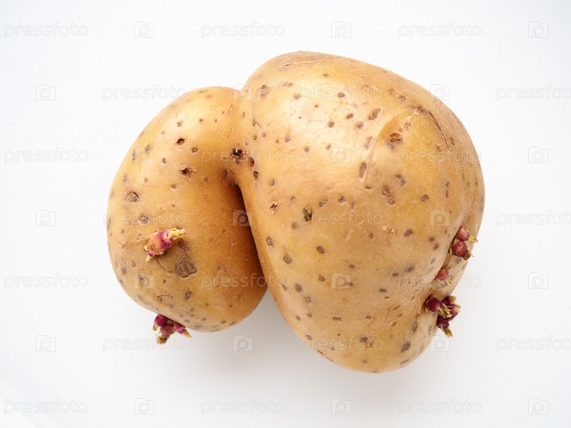 Уродливый картофель на белом фоне. Необычный овощ, ноль отходов. Овощной прут неправильной формы. Влияние диоксинов, радиации, пестицидов и мутагенных факторов на развитие растений