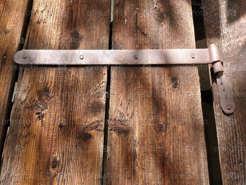 Старые металлические крепления к деревянным дверям или воротам, деревенские постройки