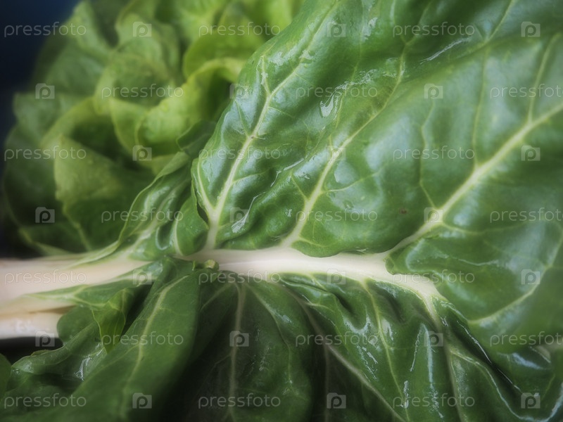 Мангольд бета обыкновенный. Двулетнее травянистое растение, подвид свеклы обыкновенной. Витаминизированные листья зеленого салата. Вегетарианская или здоровая пища. Промытый мангольд. Свежесобранный швейцарский мангольд из макросъемки органической фермы