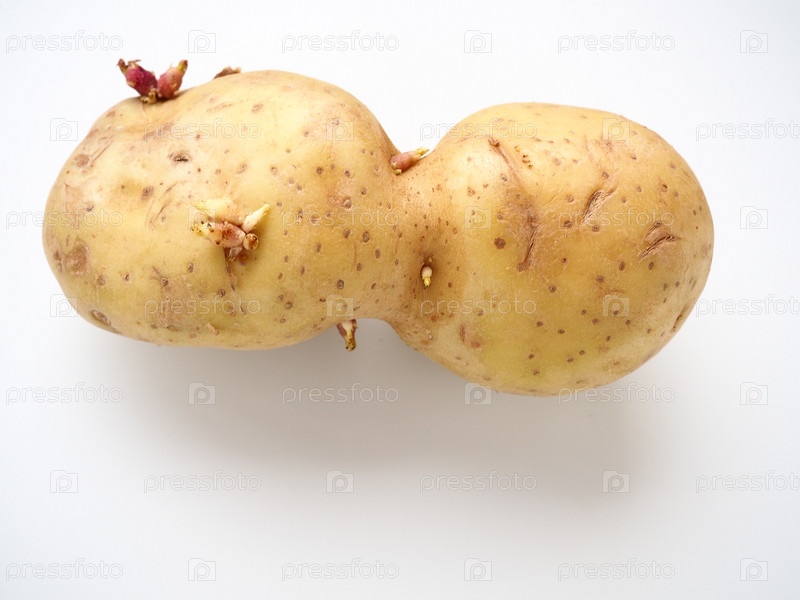 Уродливый картофель на белом фоне. Необычный овощ, ноль отходов. Овощной прут неправильной формы. Влияние диоксинов, радиации, пестицидов и мутагенных факторов на развитие растений