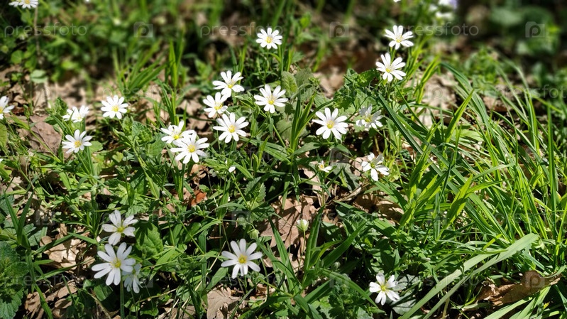 Лесная морская звезда. Нежные белые цветы в лесу. Противодиабетическое средство, натуральный подсластитель. Красивые лекарственные растения. Мягкий фокус