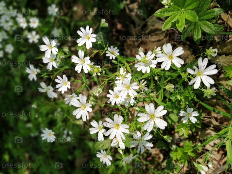 Лесная морская звезда. Нежные белые цветы в лесу. Противодиабетическое средство, натуральный подсластитель. Красивые лекарственные растения. Крупным планом