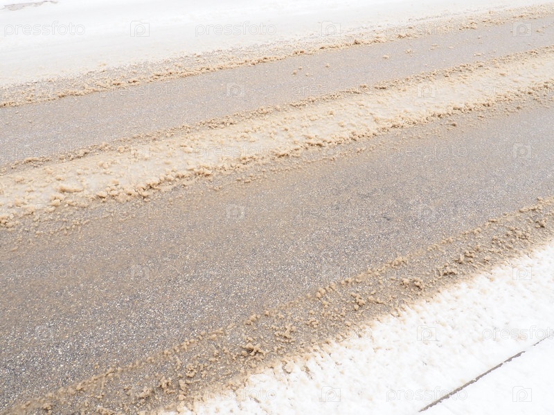 Сугробы на обочине дороги. Плохая погода и пробки. Снег на асфальте. Сложные условия вождения. Зимняя слякоть на дороге. Тормозной путь автомобиля
