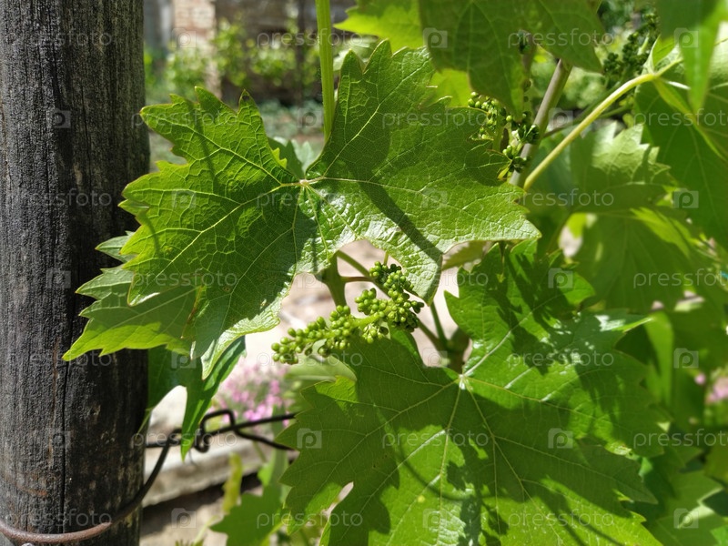 Завязь винограда на фоне листьев