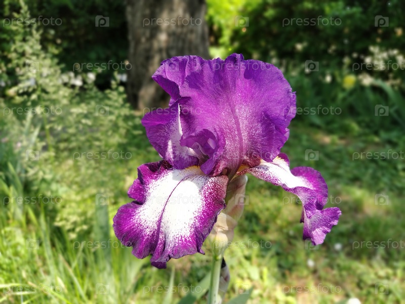 Фиолетовый ирис крупным планом. Изящный цветок в саду