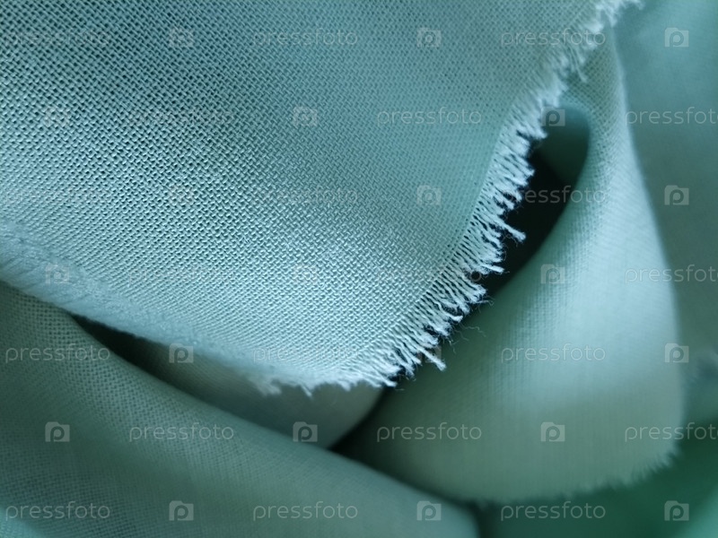 Крупным планом шерстяной ткани зеленого цвета. Абстрактный фон холста, пустой шаблон. Тонкая натуральная ткань, шерсть или лен. Край ткани обработан против обветривания