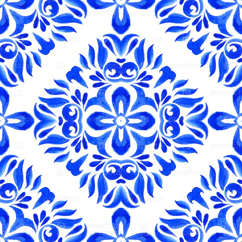 Бесшовная декоративная акварельная текстура. Звездный стиль дизайна плитки мандалы. Синий и белый силуэт снежинки