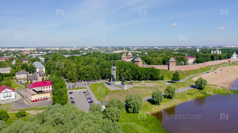 Великий Новгород, Россия. Памятник Победы. Новгородский Кремль (Детинец), Река Волхов, От Дрона