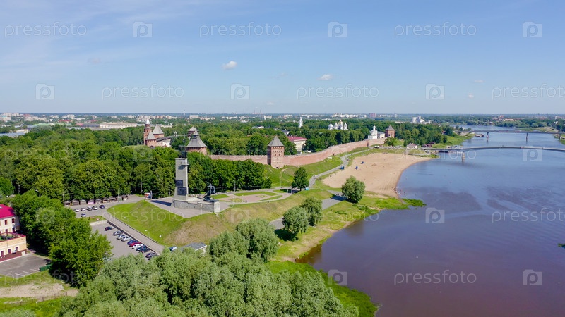 Великий Новгород, Россия. Памятник Победы. Новгородский Кремль (Детинец), Река Волхов, От Дрона