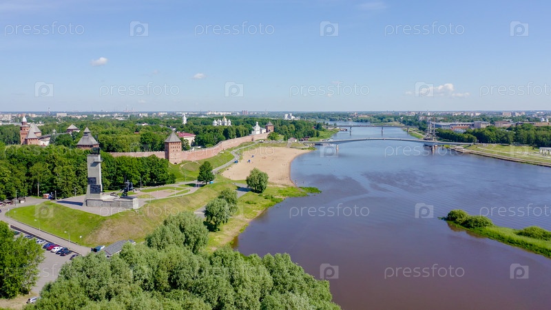 Великий Новгород, Россия. Памятник Победы. Новгородский Кремль (Детинец), Река Волхов, От Дрона