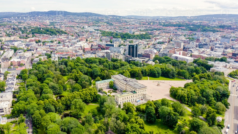 Осло, Норвегия. Королевский дворец. Слотсплассен. Дворцовый парк, От дрона