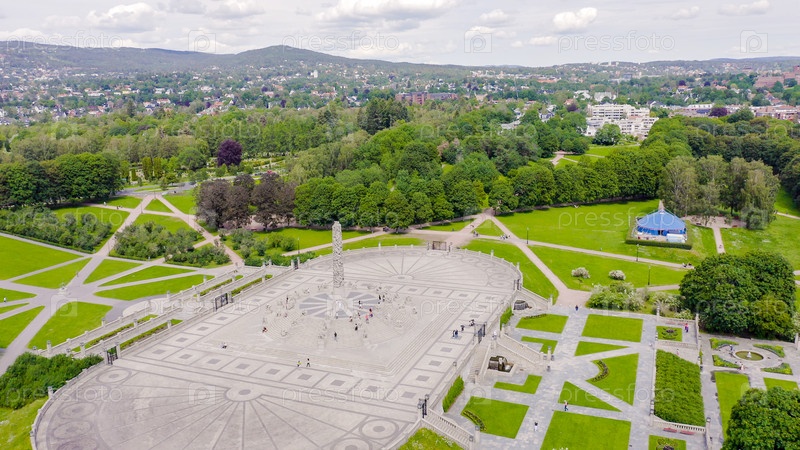 Осло, Норвегия. Парк скульптур Вигеланда. Вигеландпаркен. Парк Фрогнер, От дрона