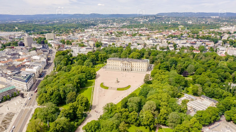 Осло, Норвегия. Королевский дворец. Слотсплассен. Дворцовый парк, От дрона