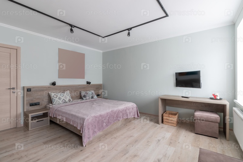 Гостиничный номер с большой двуспальной кроватью в светлых тонах