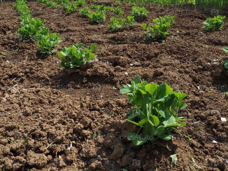 Молодые растения зеленого гороха. Vicia Fabaceae. Выращивание овощей в саду. Растение съедобного гороха высаживают в удобренный рыхлый грунт. Агроэкономическая тема. Свежие зелёные листья весной