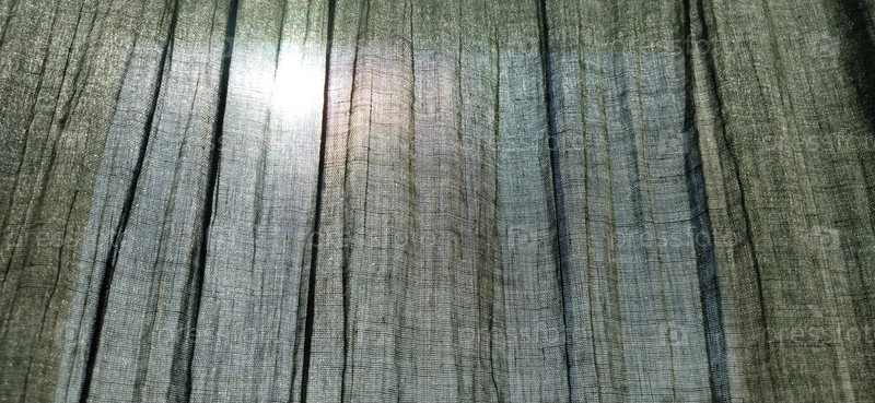 Солнце видно сквозь серые плиссированные шторы. Скандинавский стиль. Пастельные тона на ткани. Занавес полупрозрачный, через который видно, что происходит на улице