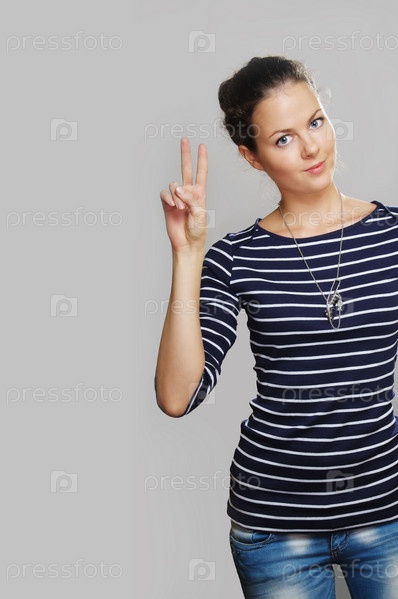 Девушка показывает два пальца