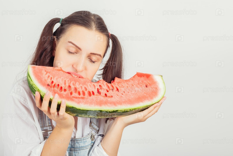 Девушка ест арбуз