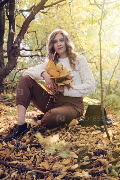 Счастливая осенняя женщина