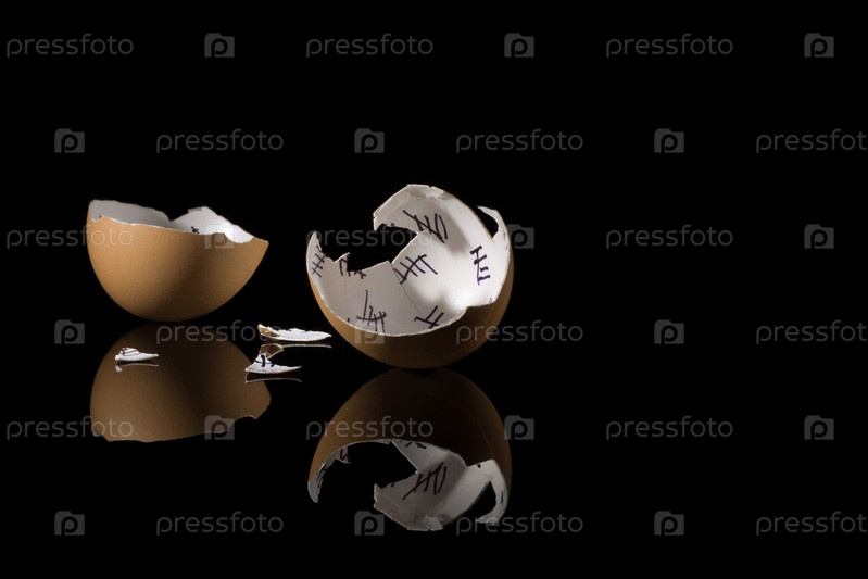 Треснувшая яичная скорлупа с обратным отсчетом на черном фоне