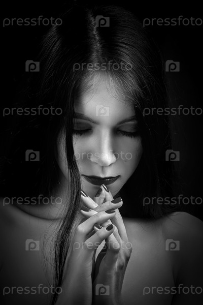 Грустная женщина молится