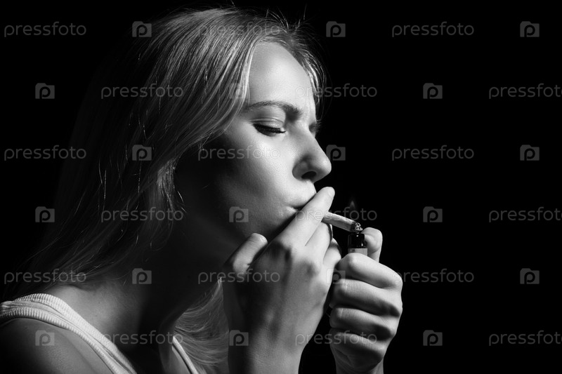 Женщина курит