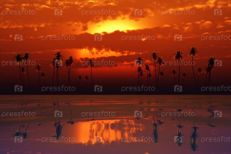 Тропический закат с оранжевыми облаками