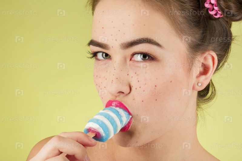Девушка ест мороженое