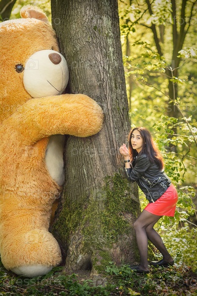 Девочка играет с плюшевым мишкой