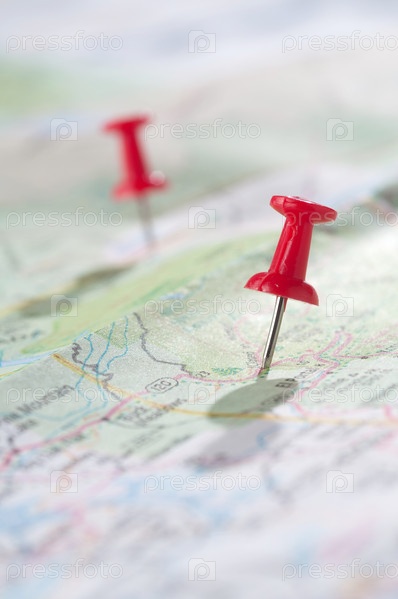 Две канцелярские кнопки на карте