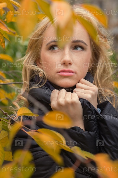 Грустная задумчивая женщина с портретом длинных вьющихся волос