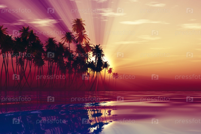 Солнечные лучи внутри кокосовых пальм