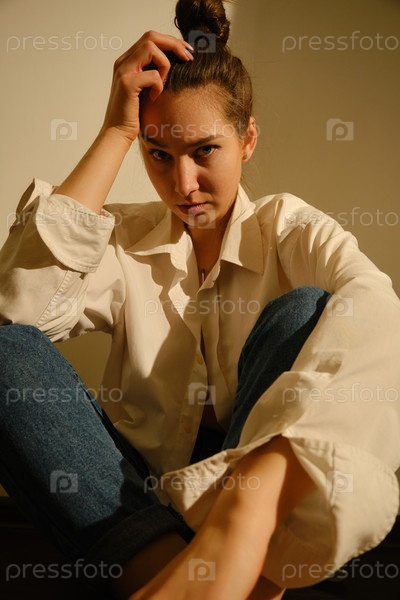 Серьезная молодая женщина
