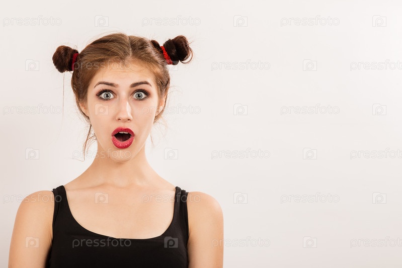 Потрясенная веселая девушка