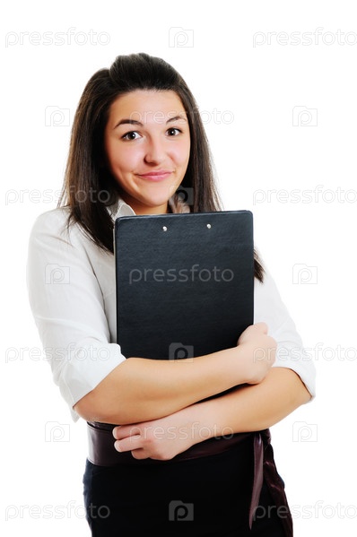 Молодая девушка с планшетом на белом фоне