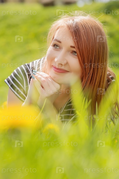 Девушка лежит в траве