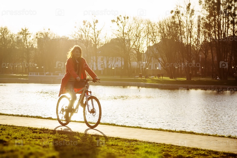 Девушка едет на велосипеде